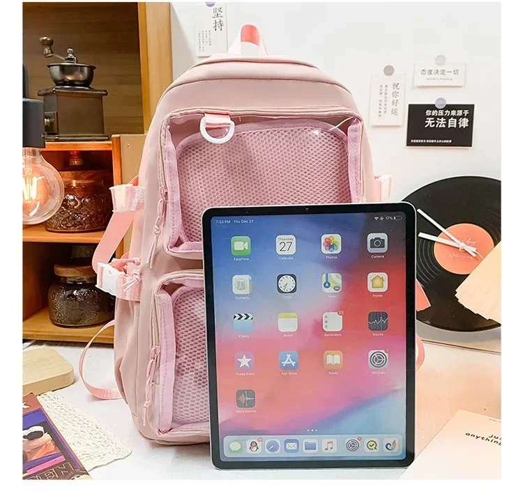 Y2K Kawaii Clear-Pocket Charm Backpack for School, Travel, Daily Life & Aesthetic Lovers