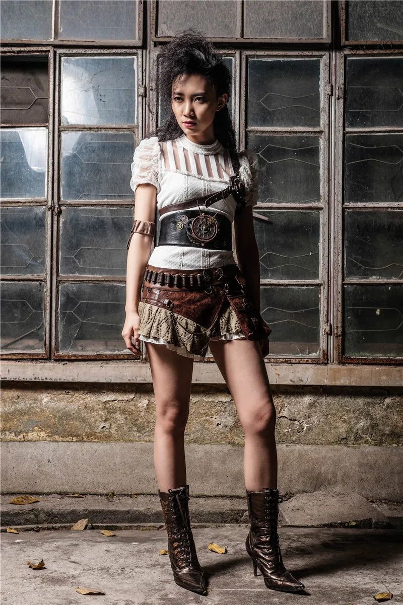 This steampunk gear corset belt is a bold waist accessory designed to sculpt your silhouette while delivering dramatic industrial detail. Perfect for alternative fashion lovers, festival outfits, cosplay looks, or statement streetwear, it combines structured shape with mechanical-inspired artistry for a powerful, eye-catching finish.