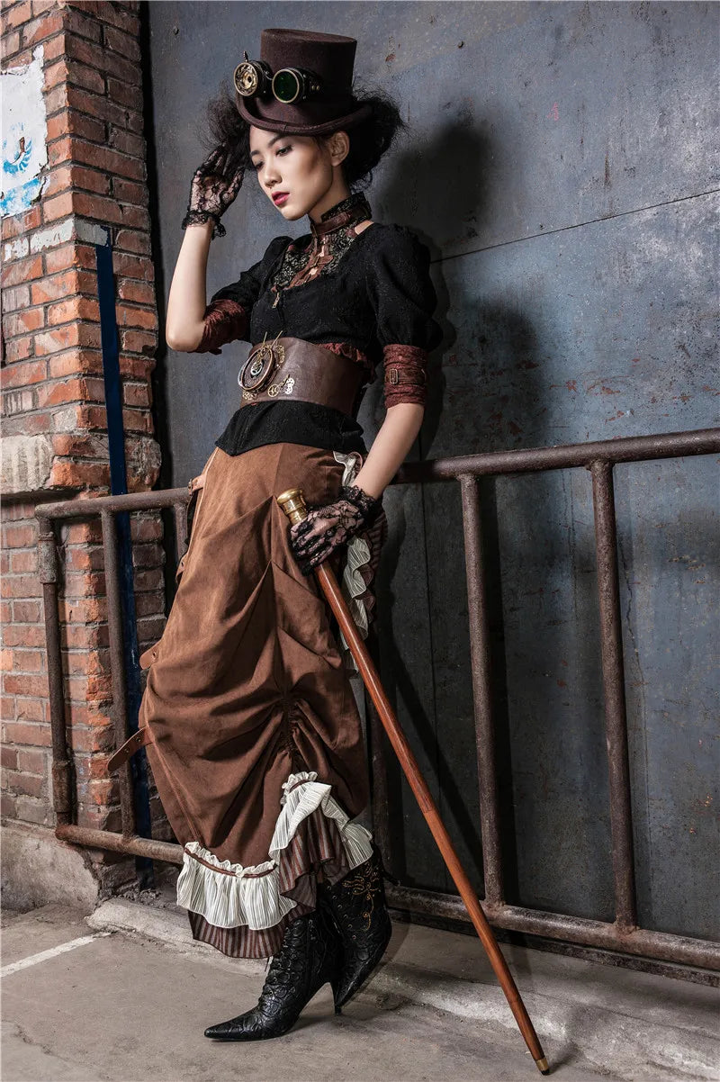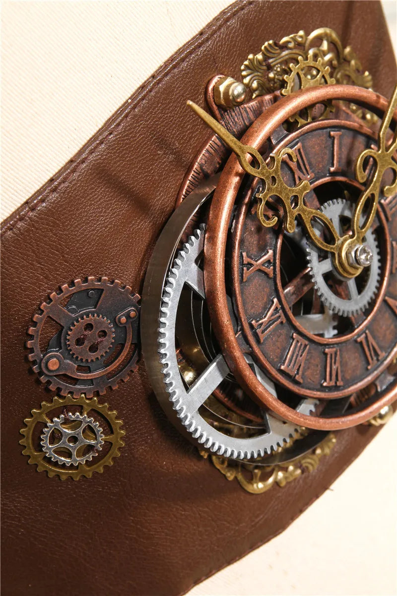 Steampunk Gear Corset Belt – Brown & Black Clockwork Waist Cincher