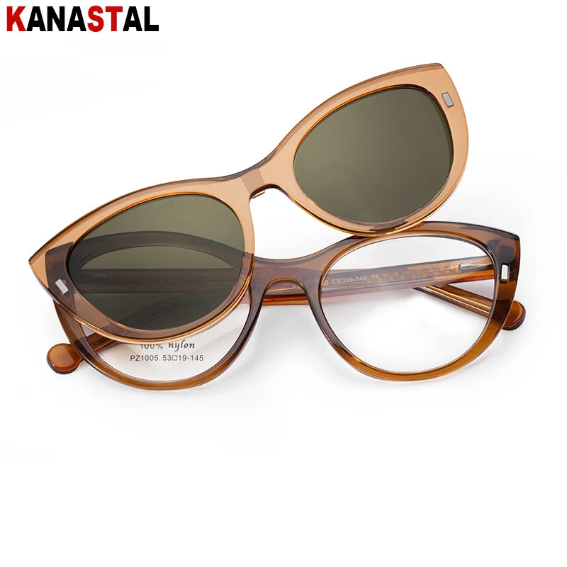 The cat-eye shape symbolizes intuition, self-assurance, and perceptive vision — while the magnetic sunglasses layer adds a sense of adaptability and protection.
