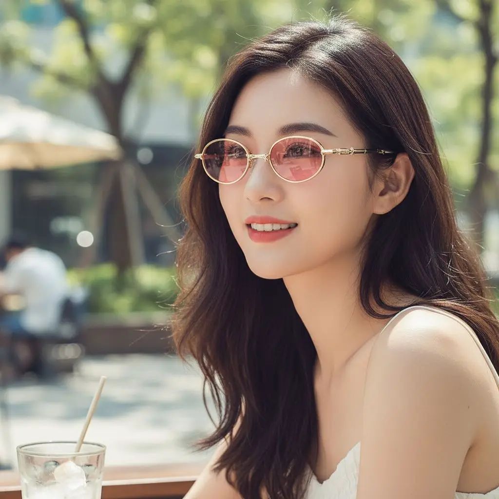 Round frames soften the face and evoke openness and warmth. Paired with pastel-tinted lenses, the mood becomes whimsical and luminous — like walking through sunlight that feels filtered just for you 😌✨.