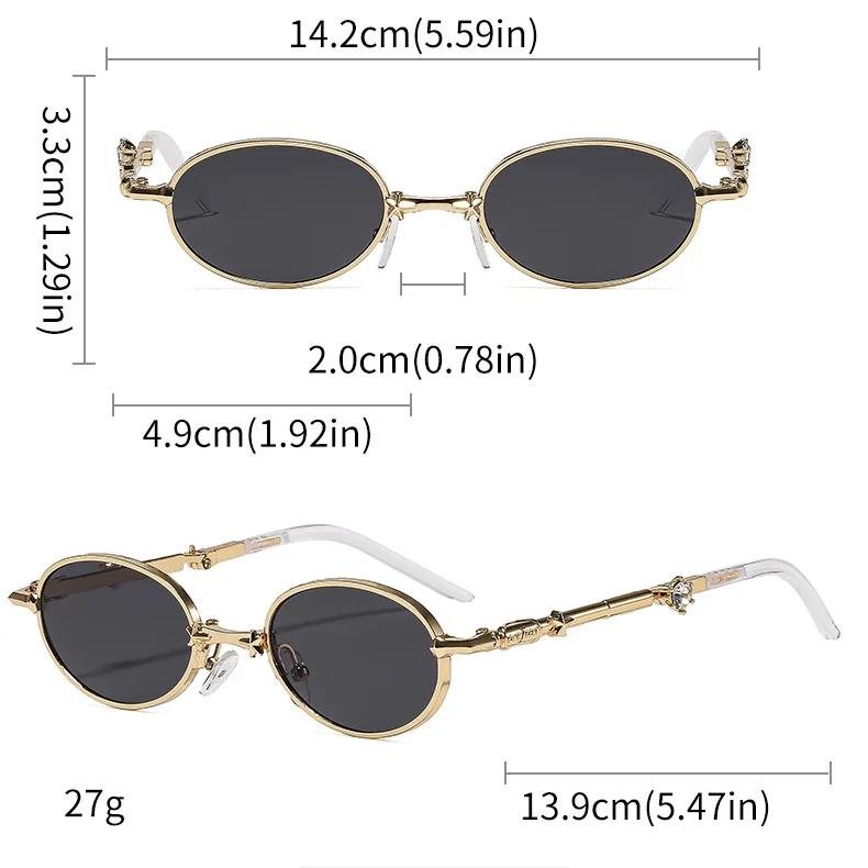 • Thin gold-tone metal frame for a vintage feel