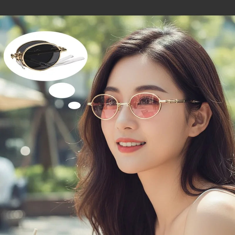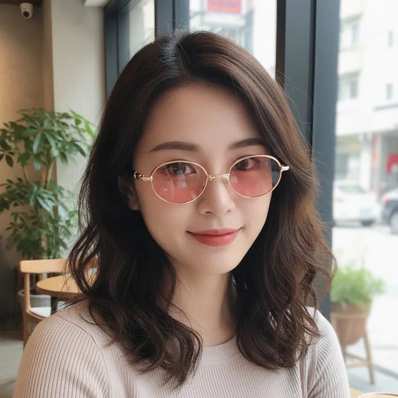 Round vintage sunglasses designed for effortless charm and light-catching elegance. As shown in your photos, these slim gold metal frames feature softly tinted lenses in pink, purple, smoke, and neutral tones — creating a romantic, airy silhouette that flatters without overpowering.