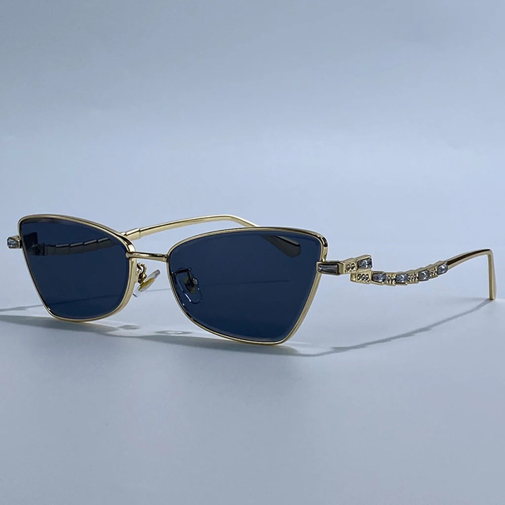 Slim Cat-Eye Sunglasses with Diamond-Studded Vintage Temples – Glam Retro Frames in Black, Brown, Blue & Champagne 😎💎