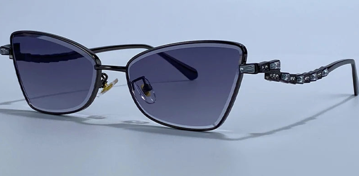 Slim cat-eye sunglasses made for the kind of confidence that doesn’t need permission. With a refined cat-eye silhouette and diamond-studded vintage-style arms, these shades deliver clean lines up front… and a sparkling surprise from the side 💎😌. Wear them when you want your look to feel finished — not fussy.