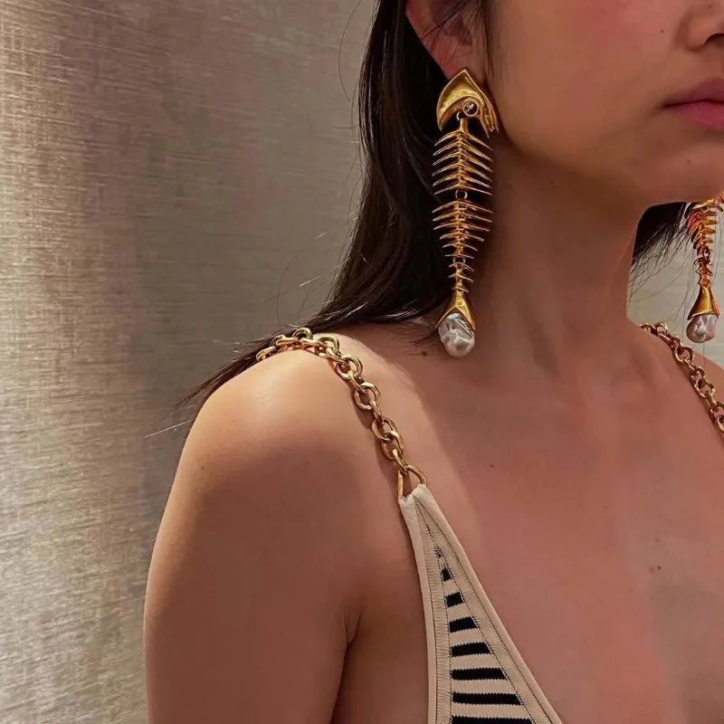 Fishbone Drop Earrings for Bold Styling and Symbolic Self-Expression