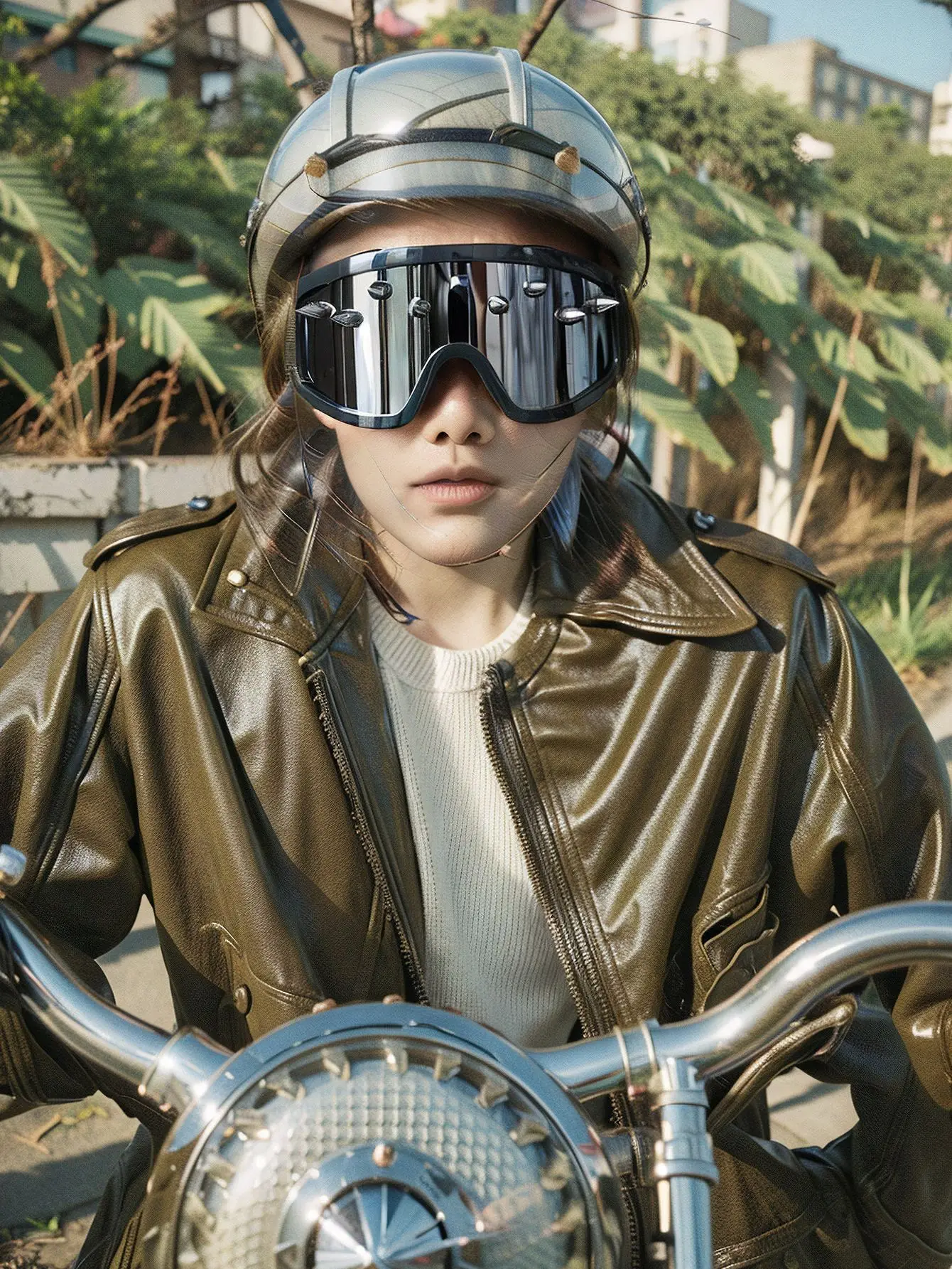 Welcome to the edge of reality — where fashion becomes armor and vision is an act of defiance. The Cyber Spire Goggles fuse industrial power with high-style rebellion, designed for those who move through chaos with precision and purpose. The mirrored lenses shimmer with cyberpunk intensity, while metal studs line the frame like circuitry carved in rebellion.