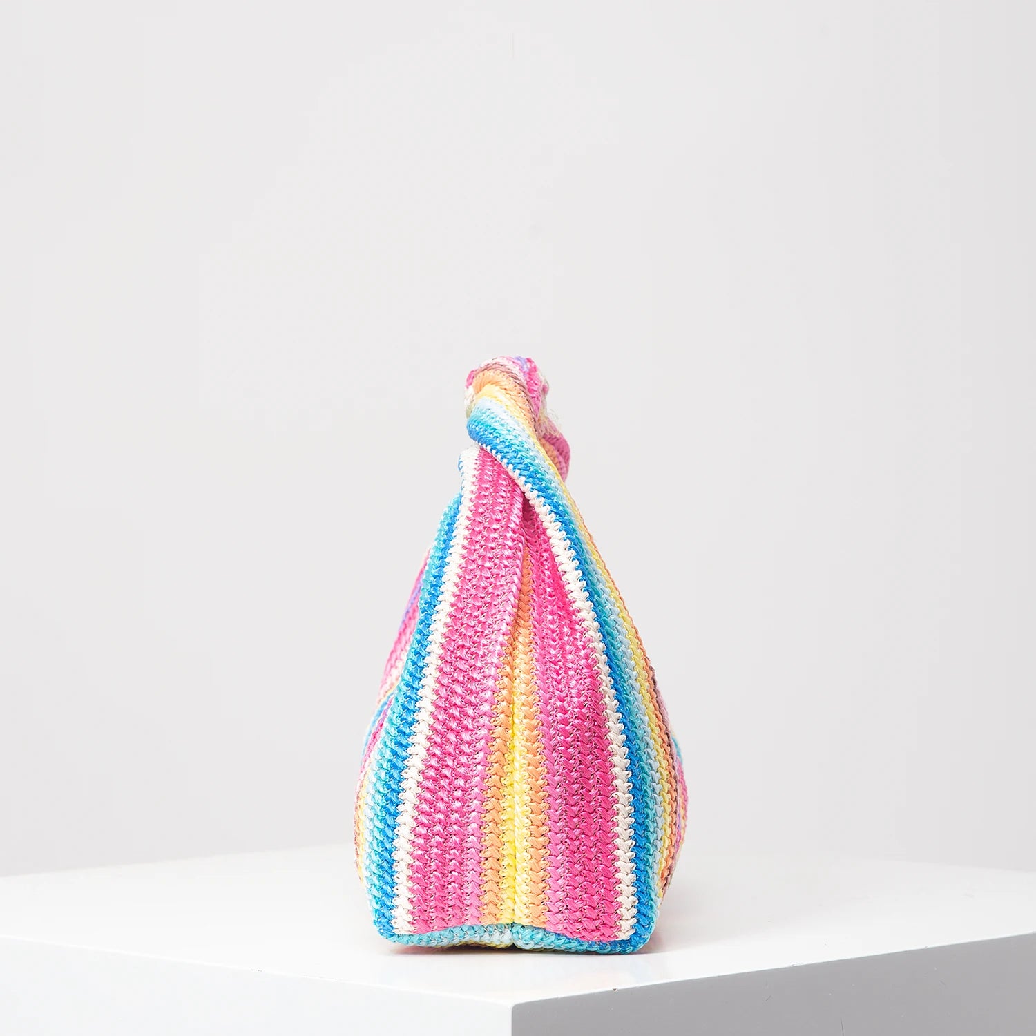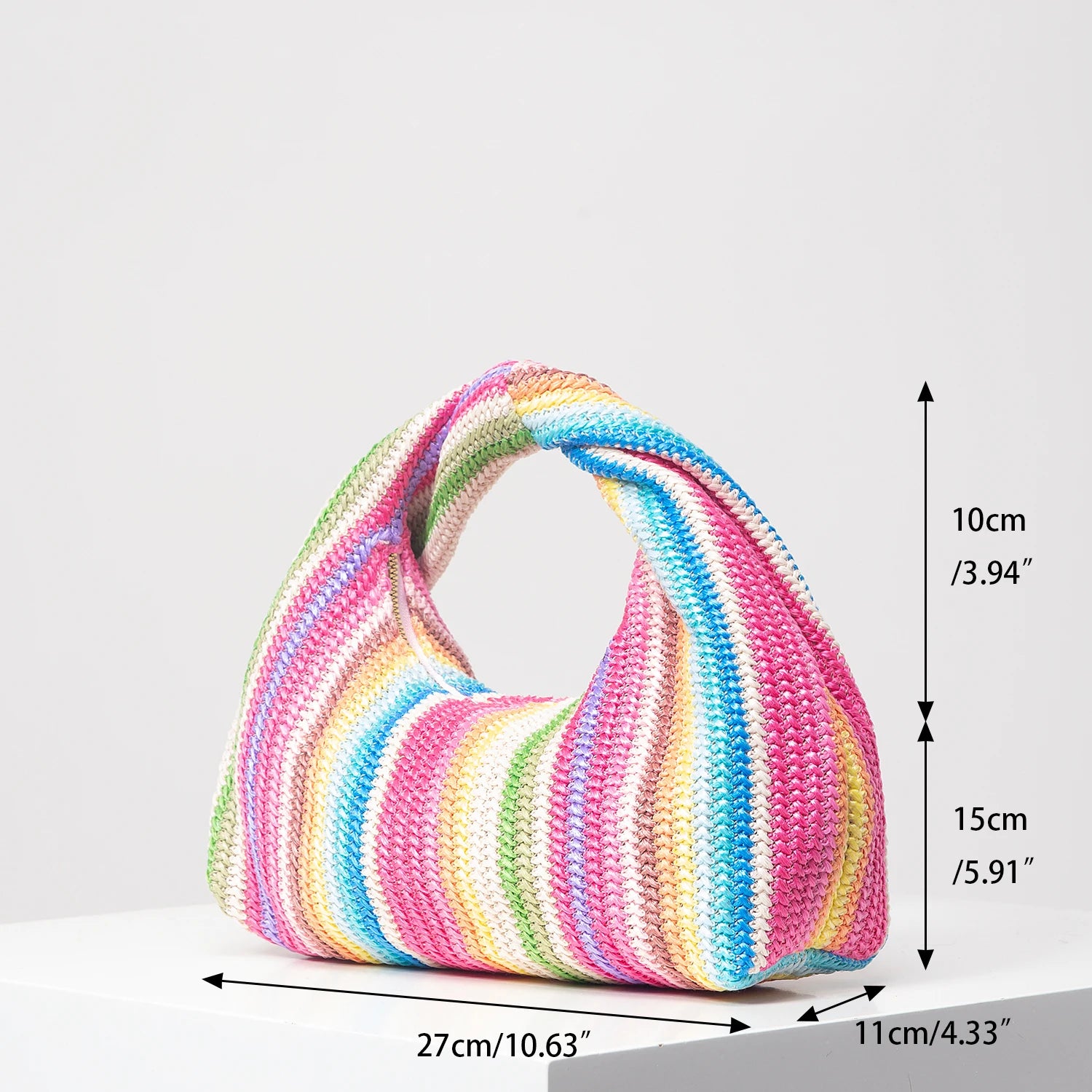 Rainbow Crochet Crescent Tote Bag – Pastel Woven Mini Shoulder Bag
