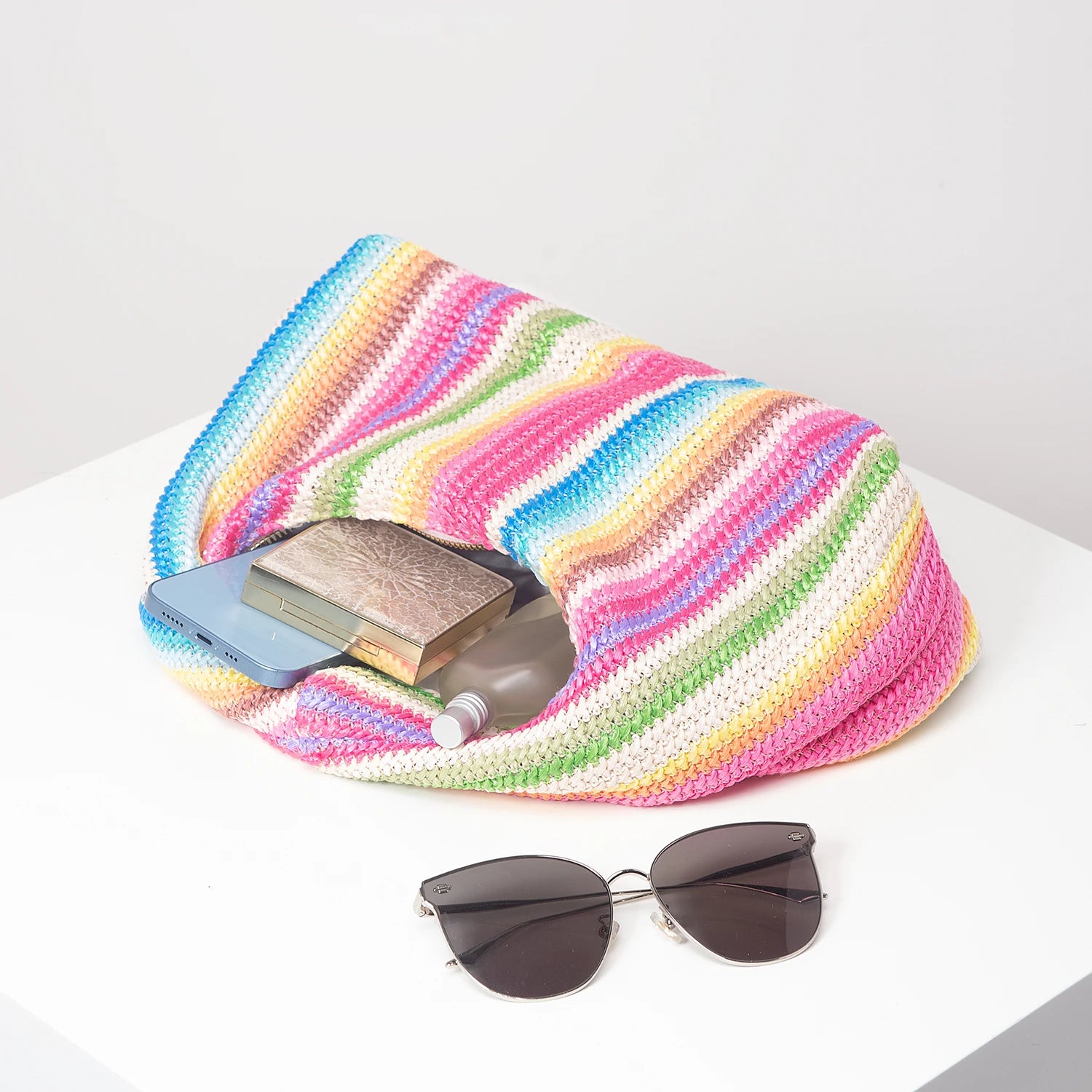 📲📦 Buy Your Very Own Rainbow Crochet Crescent Tote – Online Today