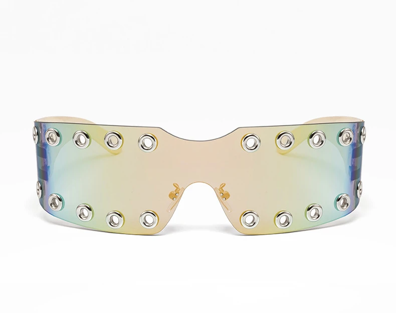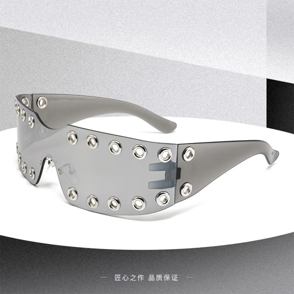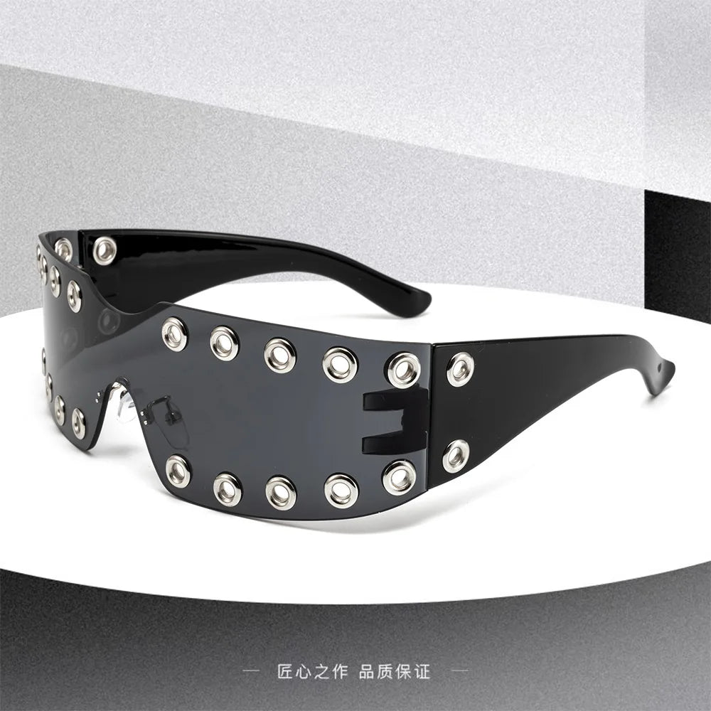 Cyberpunk Studded Shield Sunglasses – Futuristic Wraparound Statement Eyewear