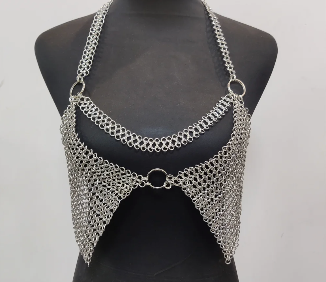 Chain mesh chest panel with open center ring detail