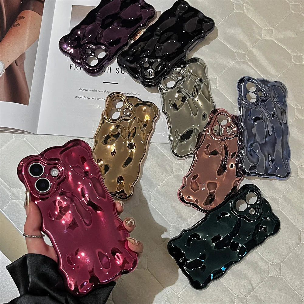 Liquid Chrome Abstract Phone Case – Sculptural Metallic Mirror Cover in Gold, Black, Wine, Green & Blue