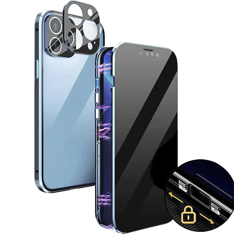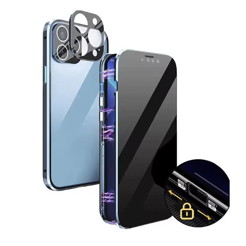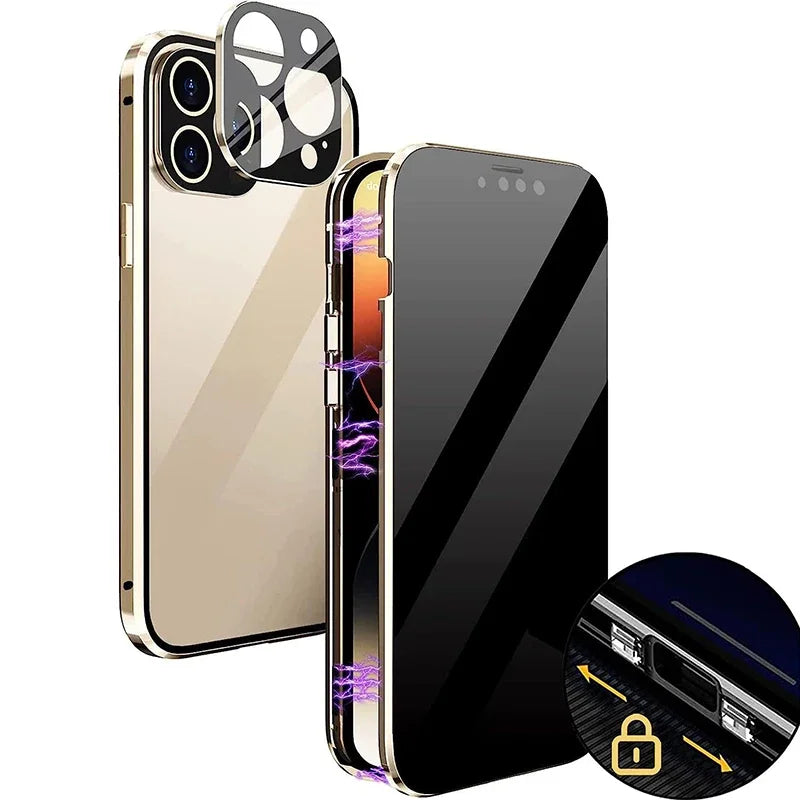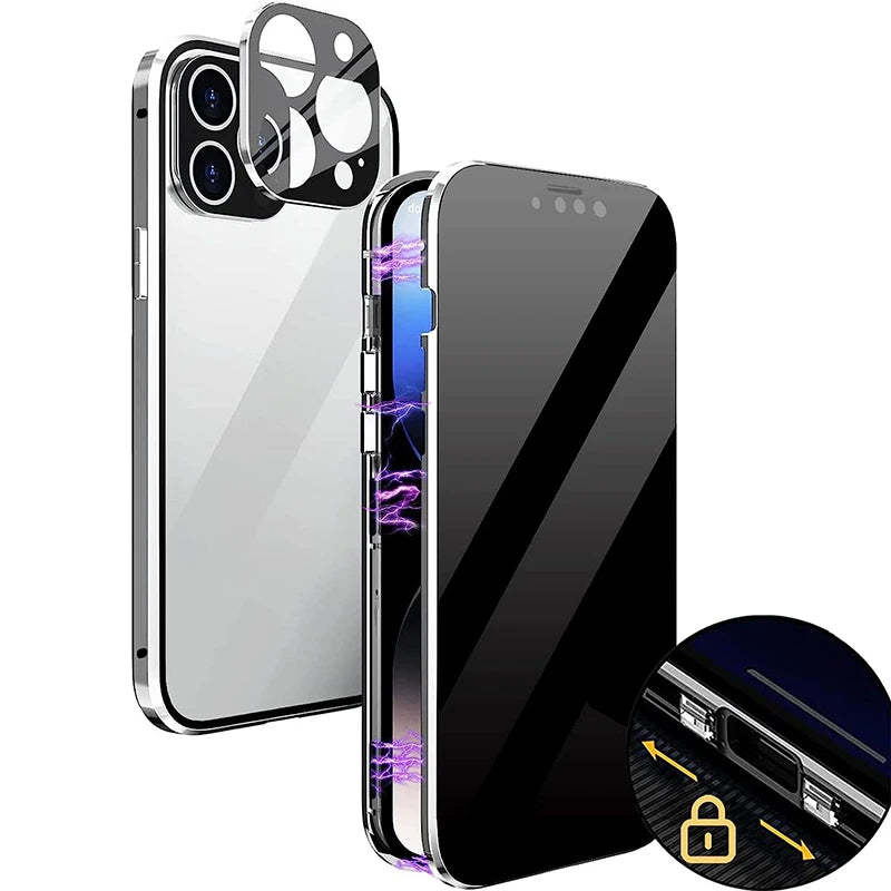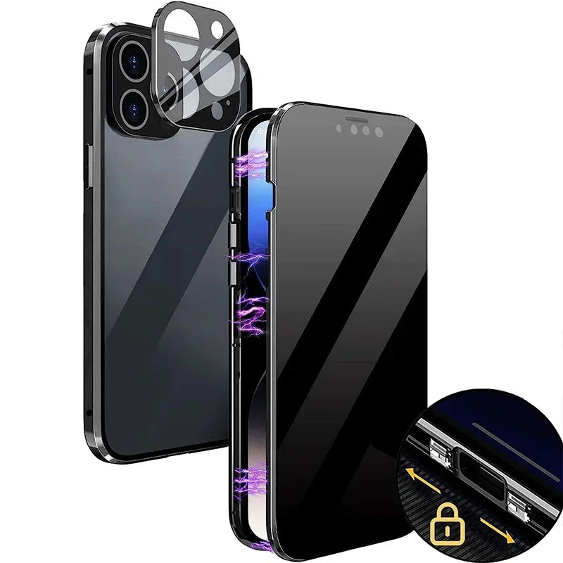 Magnetic Anti-Spy Privacy Phone Case with Tempered Glass & Shockproof Metal Frame