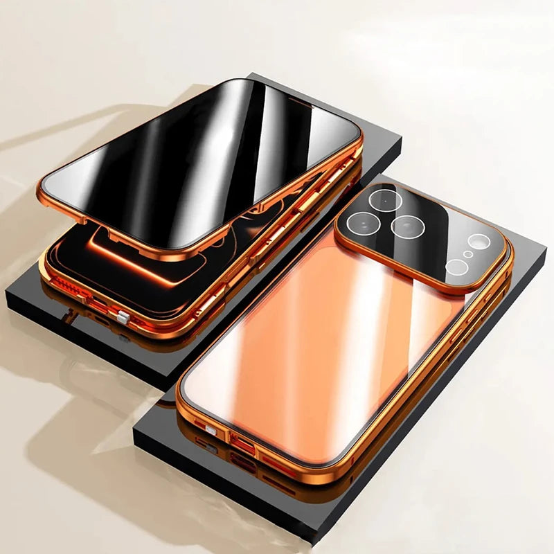 The Magnetic Anti-Spy Privacy Phone Case is designed for people who value security, privacy, and sleek modern protection. Built with a durable metal frame and dual tempered glass panels, this case protects both the front and back of your phone while keeping your screen hidden from prying eyes.