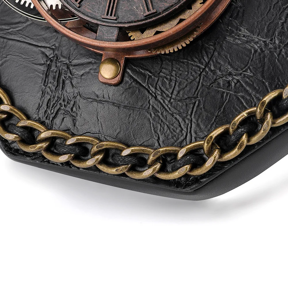 Steampunk Clock Crossbody Bag – Vintage Timepiece-Inspired Leather Purse with Chain Strap