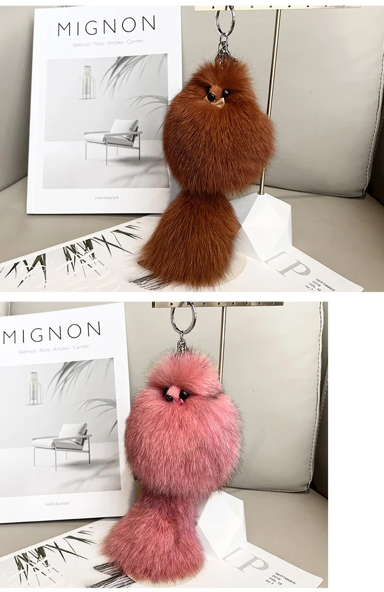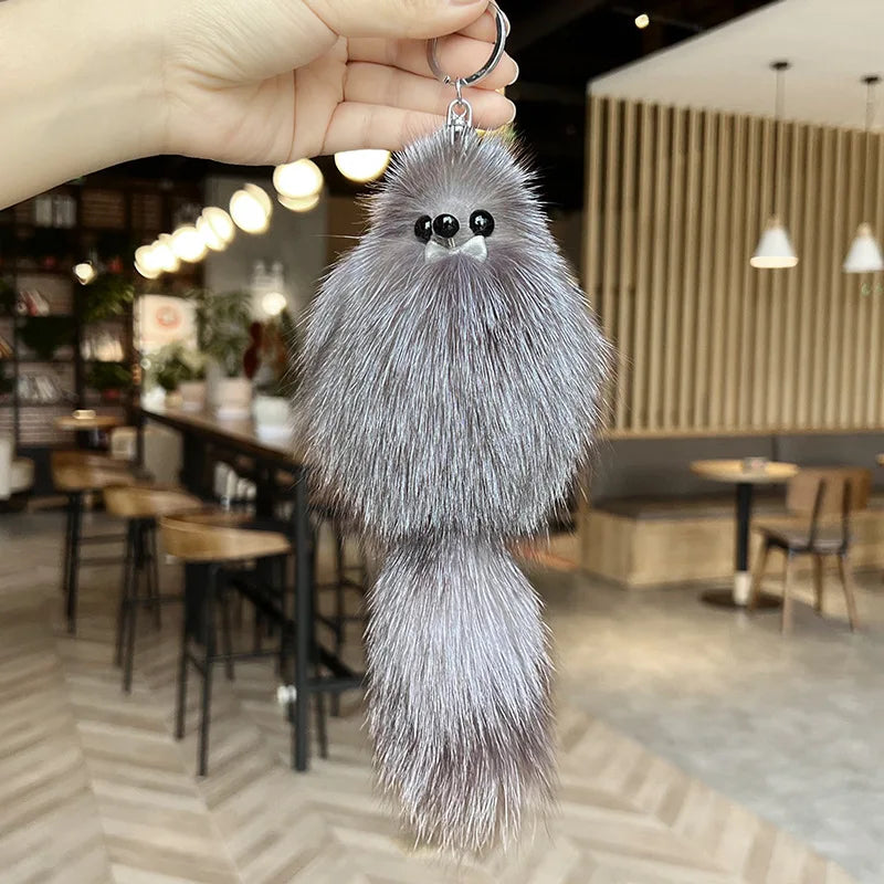 Faux Fur Fox Phone Charm Keychain – Fluffy Cute Tail Keyring In Pink, White, Grey, Black, Green & More