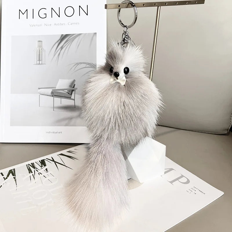 Faux Fur Fox Phone Charm Keychain For Cozy-Cute Styling And Everyday Carry