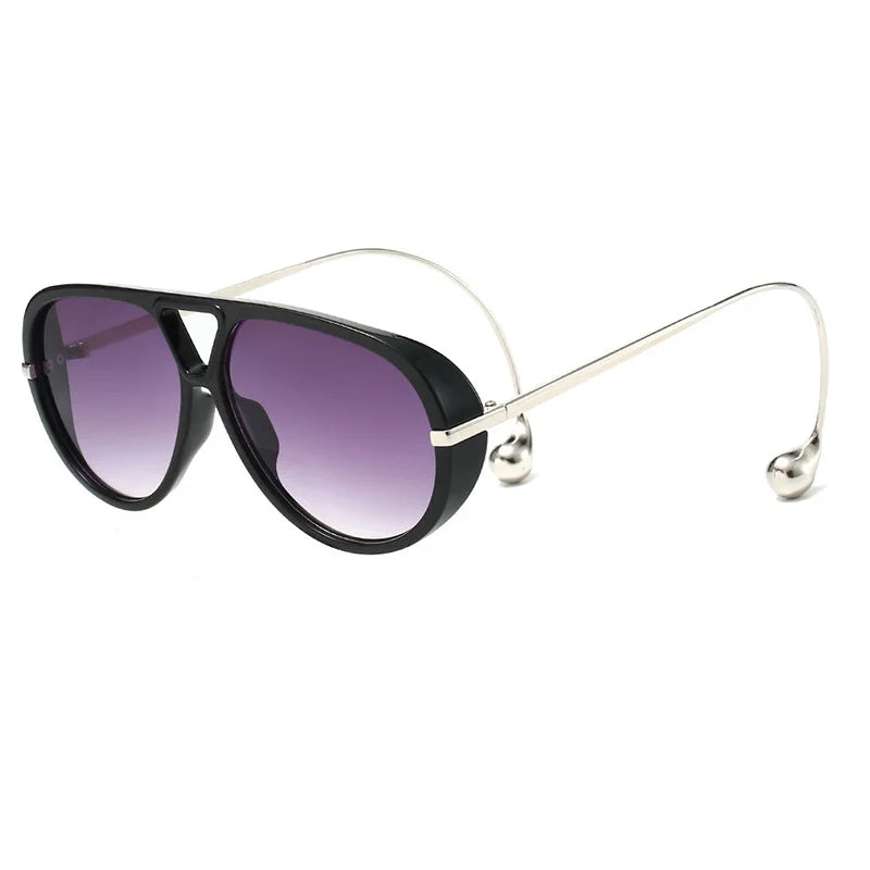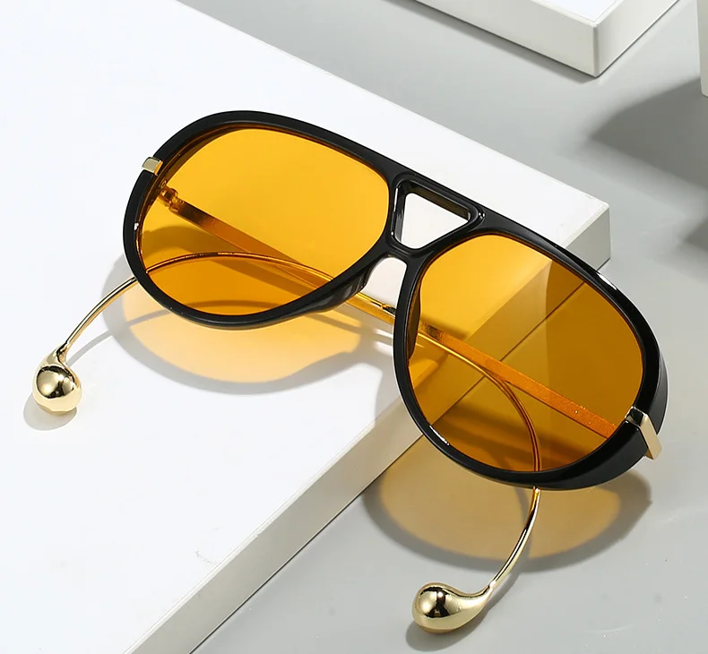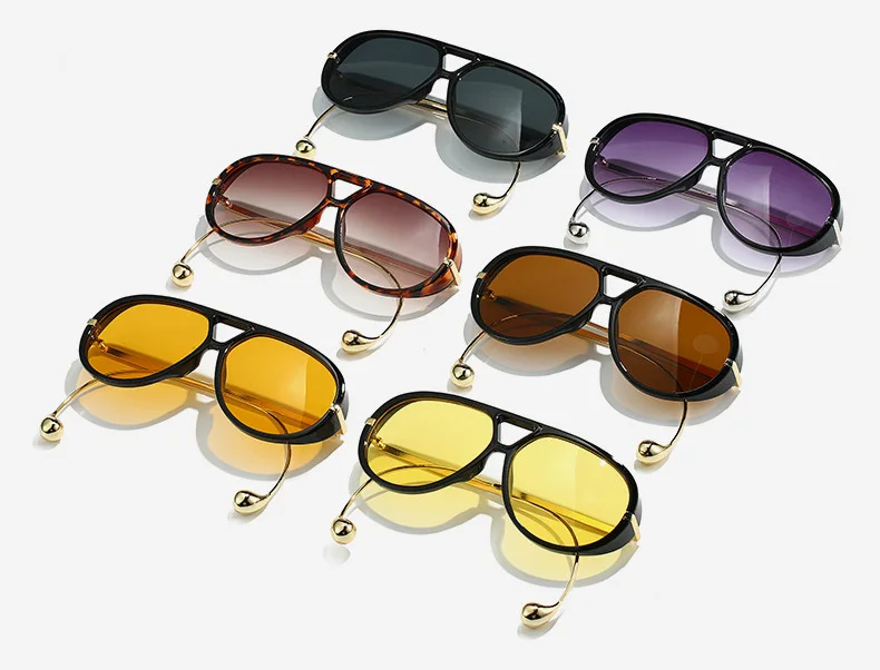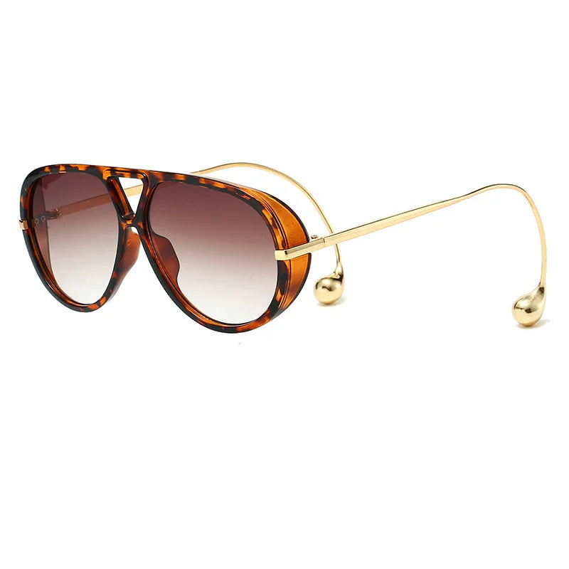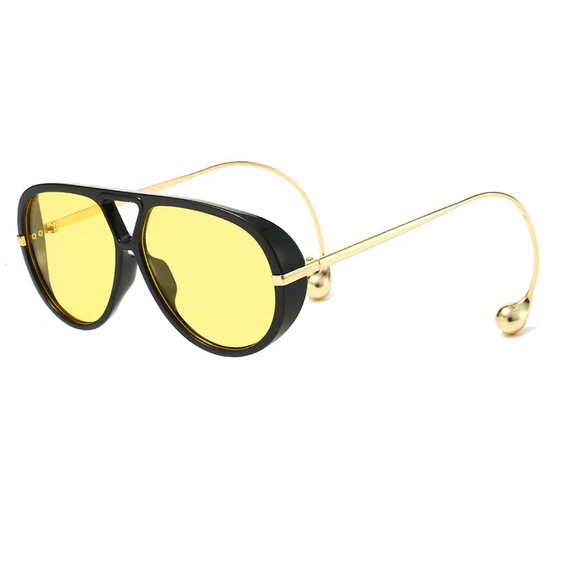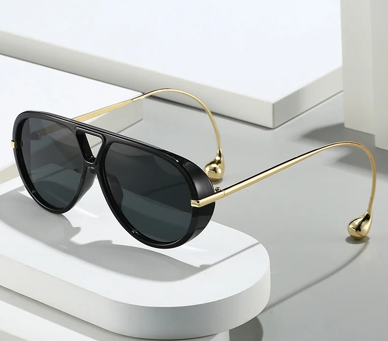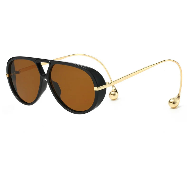 These retro pilot sunglasses bring timeless attitude with a modern polish. Featuring a classic teardrop-inspired lens shape, sleek black and tortoiseshell frame options, and ultra-slim gold metal temples with sculptural rounded tips, they strike that perfect balance between vintage energy and clean contemporary style.
