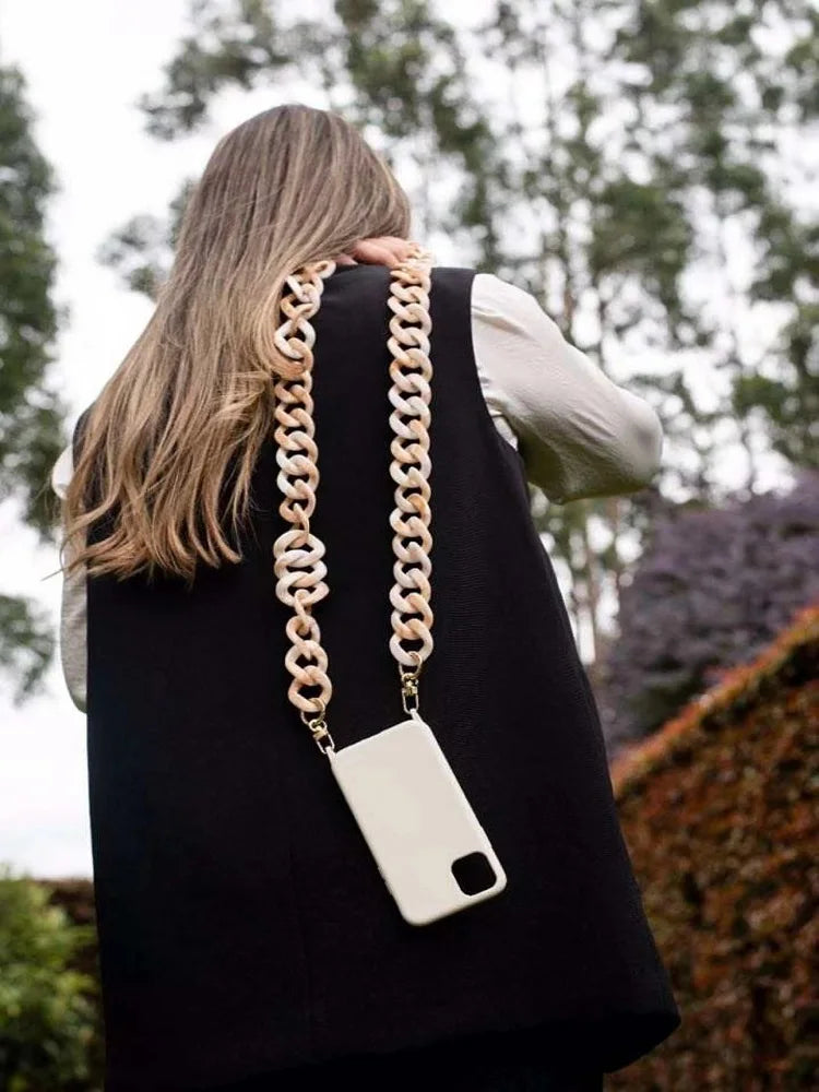 Hands-Free It Girl Energy Phone Chain Strap – Acrylic Link Crossbody Phone Strap & Case Attachment (Multicolor, Black, Marble, Sage, Tortoise)