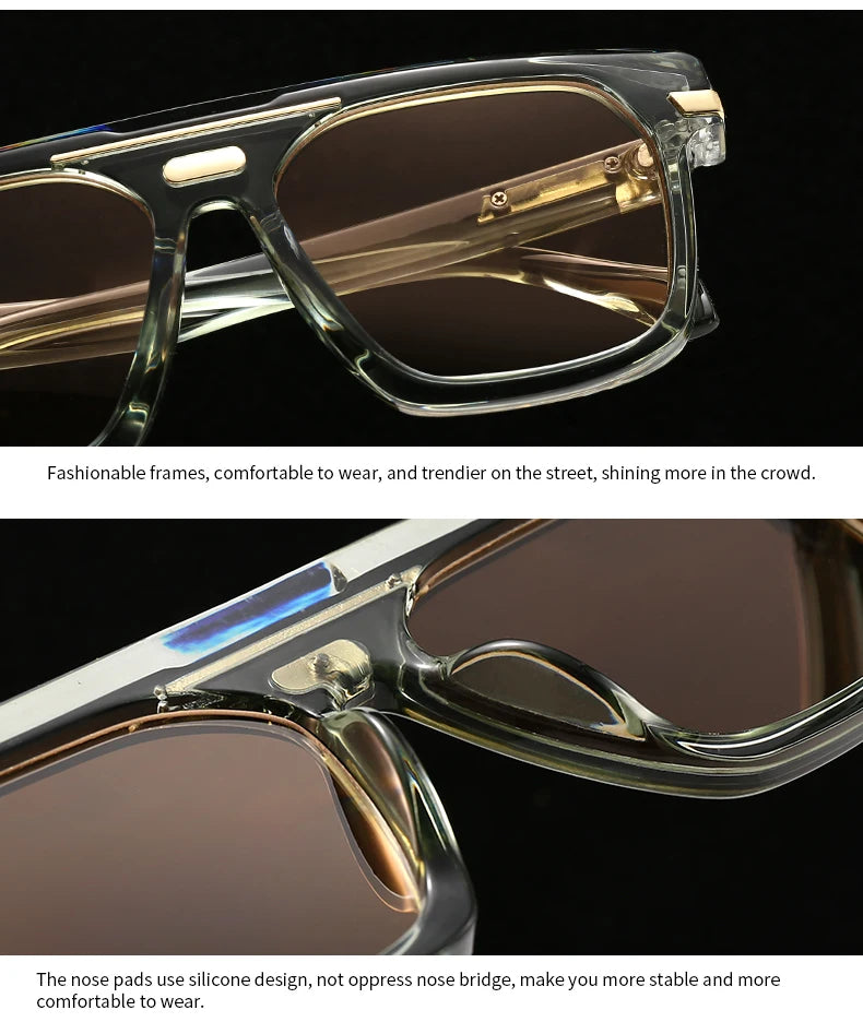 These modern square sunglasses blend minimal design with refined attitude. Featuring a structured rectangular frame, smooth transparent and solid color options, and sleek metal bar detailing at the temples, they bring effortless polish to everyday wear. They’re bold without being loud — the kind of eyewear that upgrades your whole look instantly.