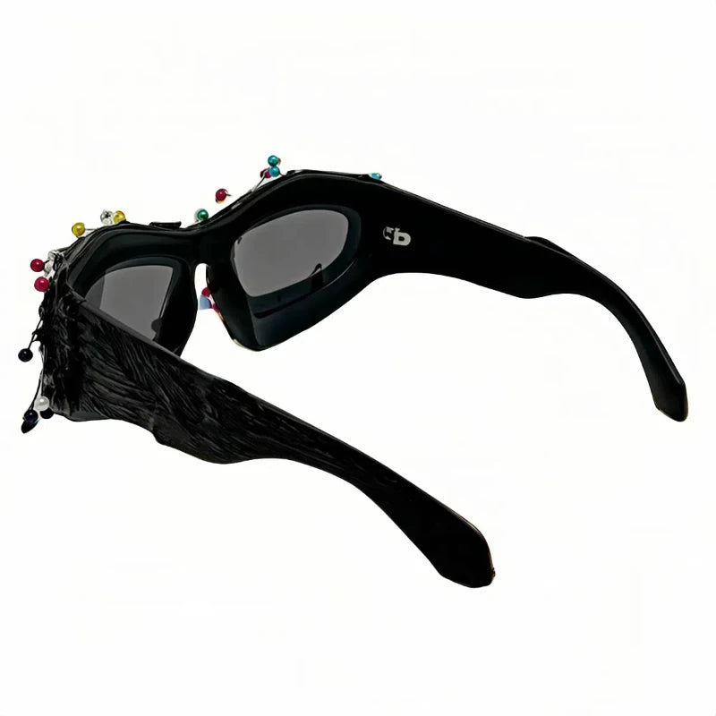 The angular cat-eye design sculpts the face and adds dramatic lift — a silhouette rooted in Y2K glamour, editorial styling, and alt fashion scenes.