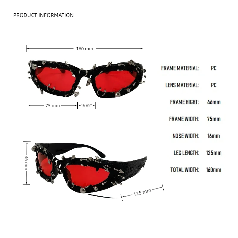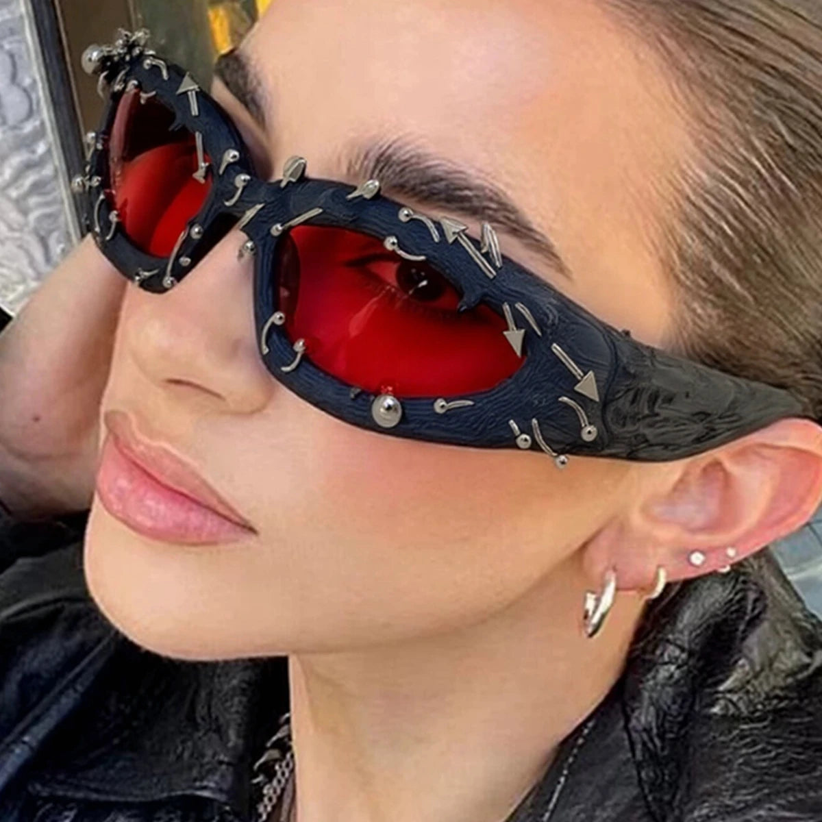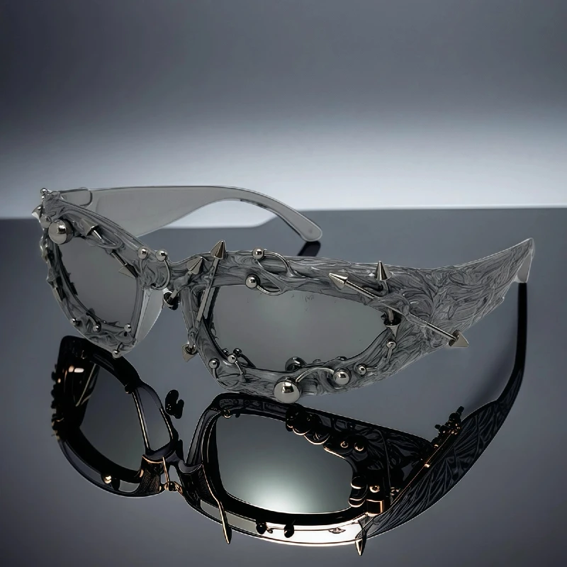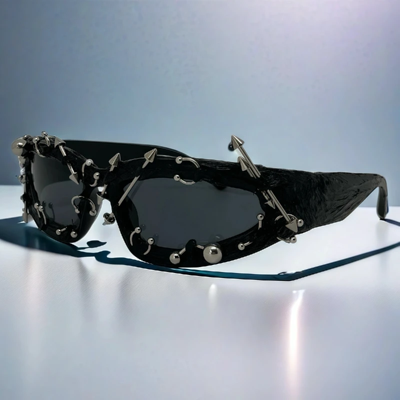 Spiked Shield Wraparound Sunglasses are made for the ones who don’t walk into a room quietly. These futuristic shield frames blend punk attitude, Y2K rebellion, and cyber-core energy into one statement accessory. With sharp wraparound shaping, metallic spike detailing, and tinted lenses, these are not just sunglasses — they’re armor for your vibe.